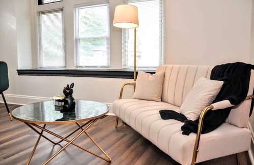 Large 1bd apt in the up and coming town of Bellevue, just a 10 min drive to downtown and the stadiums. Fully updated in 2023 this unit is equipped with high end finishes, including a fully stocked kitchen with brand new appliances, in unit washer/dryer, and a stunning bathroom with back-lit mirror. When you stay here you can also expect 5 star hospitality and an extremely clean space!
