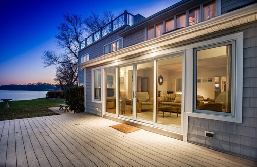 New hot tub on waterfront next to fire pit. Water views from all rooms . And a spacious kitchen, bar and ample living and gathering spaces inside and outside.