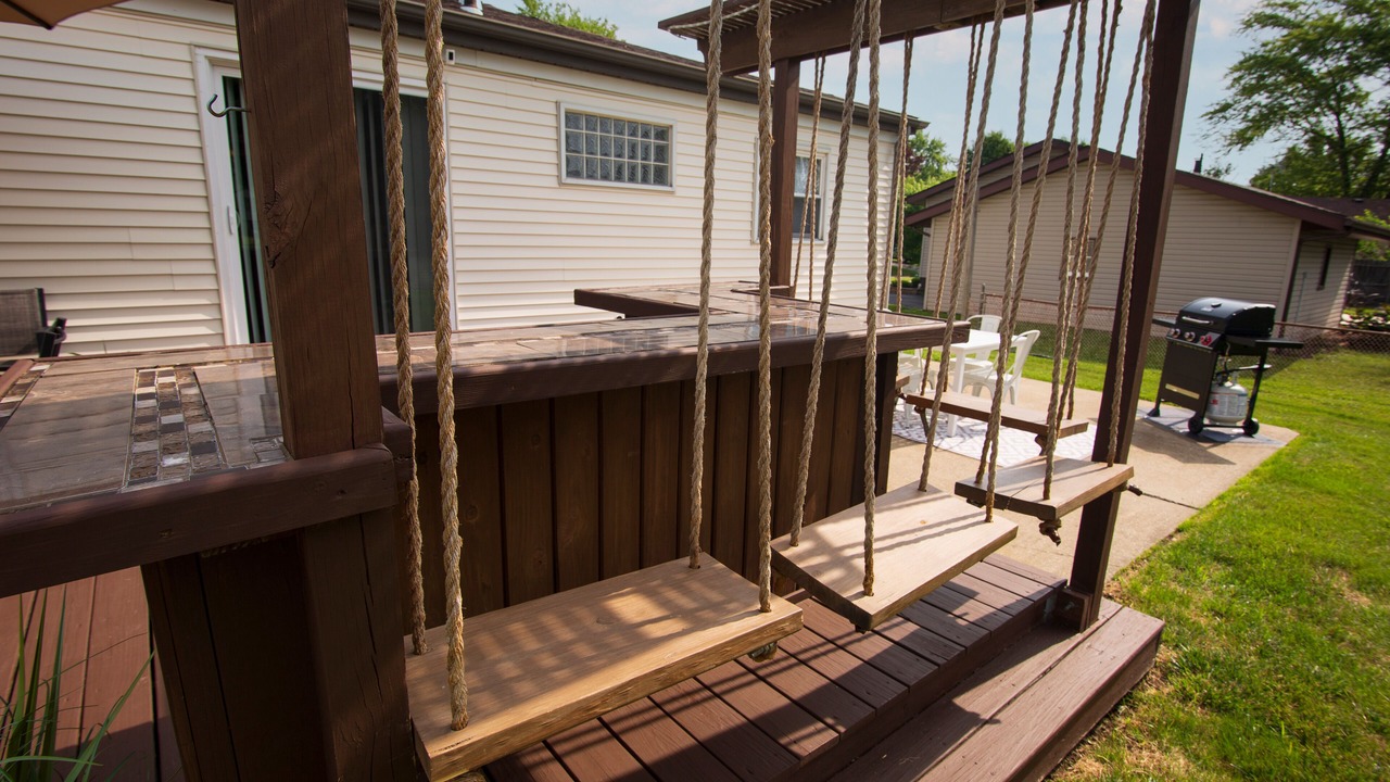 Outdoor Oasis: Step outside to a large deck with a swing bar, cement patio, and entertaining area—perfect for family BBQs, lounging, and enjoying the fresh air.