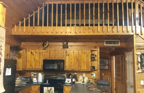 Spacious living quarters: One of the things you will enjoy about this cabin is the spacious living areas. This 1500 sq feet cabin has an enormous loft area, all wood, with windows to the outside to enjoy the view. the loft area has an Amish made bunk-bed and a sofa bed to accommodate extra guests. The covered deck area has a hot tub to relax and enjoy nature at its finest. There is a gas BBQ. The rooms are comfortable with all the furniture needed for an extended stay. The beds are new and are super comfortable. Everything in the house is new.