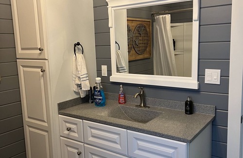 The kitchen creates an ideal spot to cook a full course meal for the entire gathering. With all the essentials and space to work comfortably. Nothing I hate more than a VRBO with empty cabinets. We're fully stocked with the basics to prepare a flavorful meal.