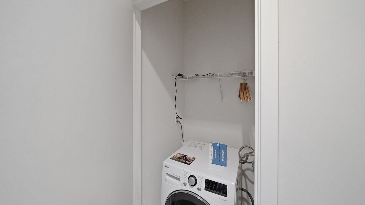 Laundry at your fingertips: Keep your clothes clean and tidy with the in-unit washer and dryer, conveniently located in the laundry closet.