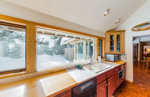 At the top of the hill on Warm Springs Road, a bus stop can take you into town or to the slopes. A private stairway at the end of the road will connect skiers to the warm springs lifts with just a short walk. In the winter, River Run and Warm Springs have world-class runs for the avid skier. Head to Dollar Mountain, about four miles away, for lighter skiing. Ketchum and Sun Valley offer excellent dining options and shopping. Bald Mountain offers hiking, biking, and paragliding in the summer. Also, this charming retreat has direct river access, which is ideal for fishing during the summer months.