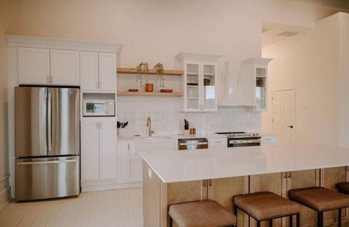 Welcome to The Roller Rink Loft — 301, your third floor retreat once a former roller rink transformed into a stylish modern retreat. Embodies the spirit of a NYC loft in quaint small town while offering a view over Main Street. It's tailored for big multi-families, groups, corporate events, or multiple friends to gather. Sleeps 8+ comfortably with room for more. Four bedrooms, three bathrooms, and a spacious living area. Enjoy large windows and historic charm of Madison's shops and riverfront.