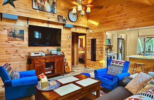 Welcome to your enchanting cabin escape! Get comfy in the inviting living area, cook up a feast in the well-stocked kitchen, and relax in super comfy bedrooms. Step outside to a huge deck with a fun swing or gather around the firepit under ambient string lights. Explore scenic hikes, take a refreshing swim in the nearby lakes, catch a Bethel Woods show, or enjoy great waterfront dining. Whether you’re up for adventure or just want to unwind, this cabin is your perfect getaway. Book today.