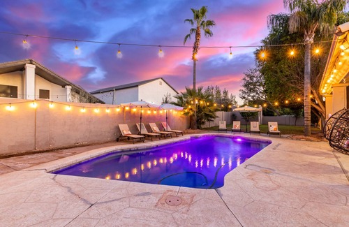 Welcome to Three Palms Citrus Cove Mesa, a stunning vacation rental nestled in the heart of Mesa, Arizona. This spacious 4-bedroom home offers a perfect blend of luxury and comfort, accommodating up to 14 guests, making it an ideal choice for family gatherings or group retreats.