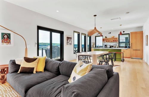 Beautiful retreat right on the Hudson river just minutes from Saugerties Woodstock and the HITS Horse Show. The whole house has a sleek design, three bedrooms with river view, chef’s kitchen, heated floors, and panoramic Hudson River views. Enjoy a private shore line, crisp comfortable linens, fast Wi-Fi, and a peaceful, pet-friendly setting. Perfect for families, couples, or remote work. Explore nearby dining, hiking, and art in the heart of the Hudson Valley.