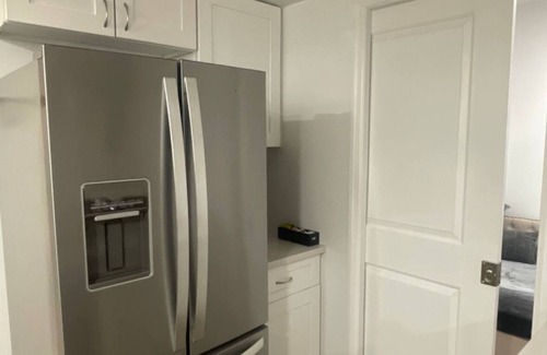 The apartment features a full-size kitchen, a bedroom with a Queen bed for 2, and a Trundle bed that accommodates 2 additional guests. Convenient street parking is available, so there's no need to pay for parking! The entrance has stairs leading downwards to the apartment!