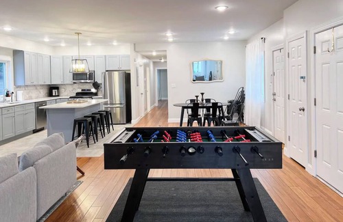 This newly built apartment offers a spacious open-plan design, showcasing an expansive layout, contemporary decor, heightened ceilings, and ample natural light. Unwind in the family room with cinematic entertainment and craft delightful family meals within the kitchen. Situated on a tranquil one-way street in convenient reach of EWR & NYC, it's an ideal home for visitors. Please note the noise monitor in the dining area and outdoor cameras overseeing the driveway and side hallway.