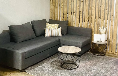 Our newly renovated studio loft is a second story unit located on the back of my property above the detached garage. The space is outfitted with a comfy king size bed, and a sleeper sofa. The master bedroom space has curtains to close off the space for a little more privacy. The 55in TV is mounted on a swivel mount to enjoy from either space. There is a washer/dryer in unit all guests are free to use. Our property is family friendly and we can’t wait to host you!
