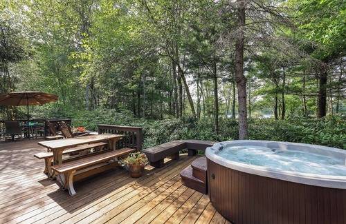 ScatterJoy, the #1 ranked lakefront retreat at Platinum Lake Naomi Club is located in Pocono Pines. ScatterJoy, the #1 ranked lakefront retreat at Platinum Lake Naomi Club provides accommodation, featuring Pet Friendly, Hot Tub, Air Conditioner, among other amenities. This House features Pet Friendly, Hot Tub, Air Conditioner, to make your stay a comfortable one.