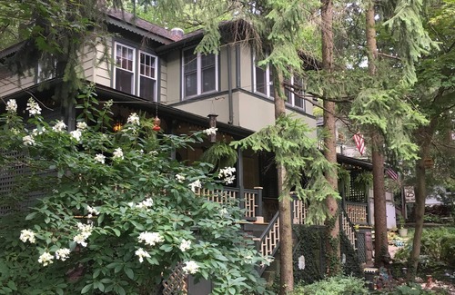 There is a large private wrap around porch for relaxing and enjoying the quiet surroundings. The porch overlooks Campmeeting gardens with no cottages blocking your view ,with parking for three cars in front of the cottage. Dine outside on the porch (table that seats six ), or eat at the smaller table that seats two for more intimate meals.